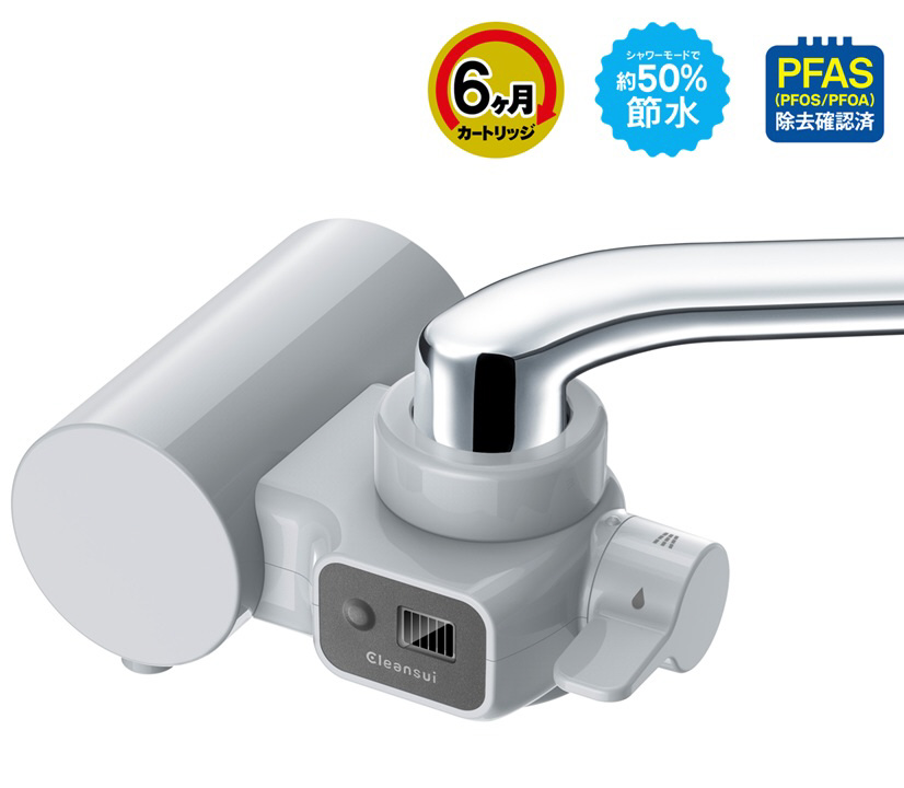 クリンスイ独自の中空糸膜+活性炭のダブル浄水で、雑菌や赤サビ、PFASの一種であるPFOS・PFOAなどを除去します。