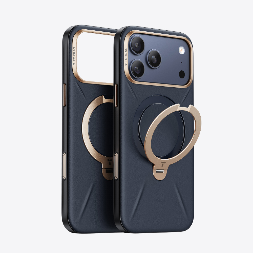 Torras - Ostand Q3 レザートーン Case for iPhone 17 Pro Max [ Midnight Blue ]