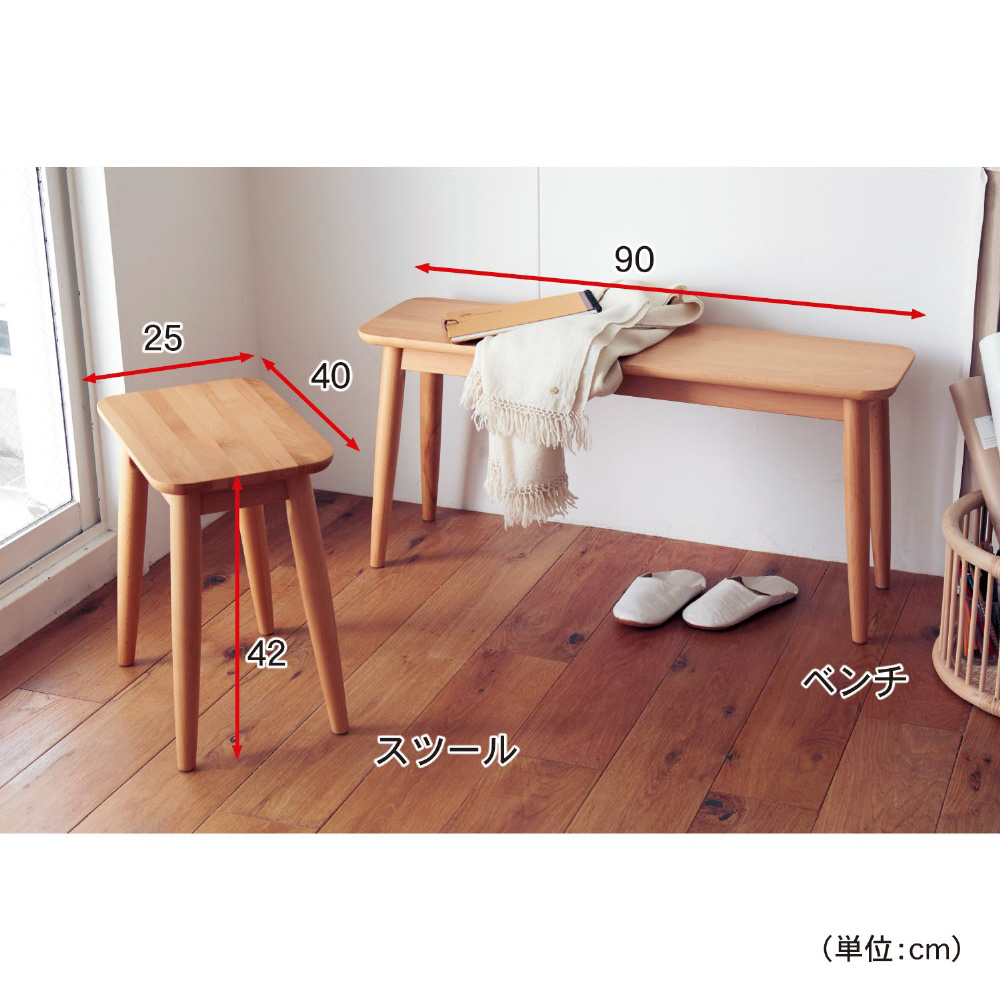 すっきりとしたまるみの北欧調スツール・ベンチ ベンチ/幅90cm
