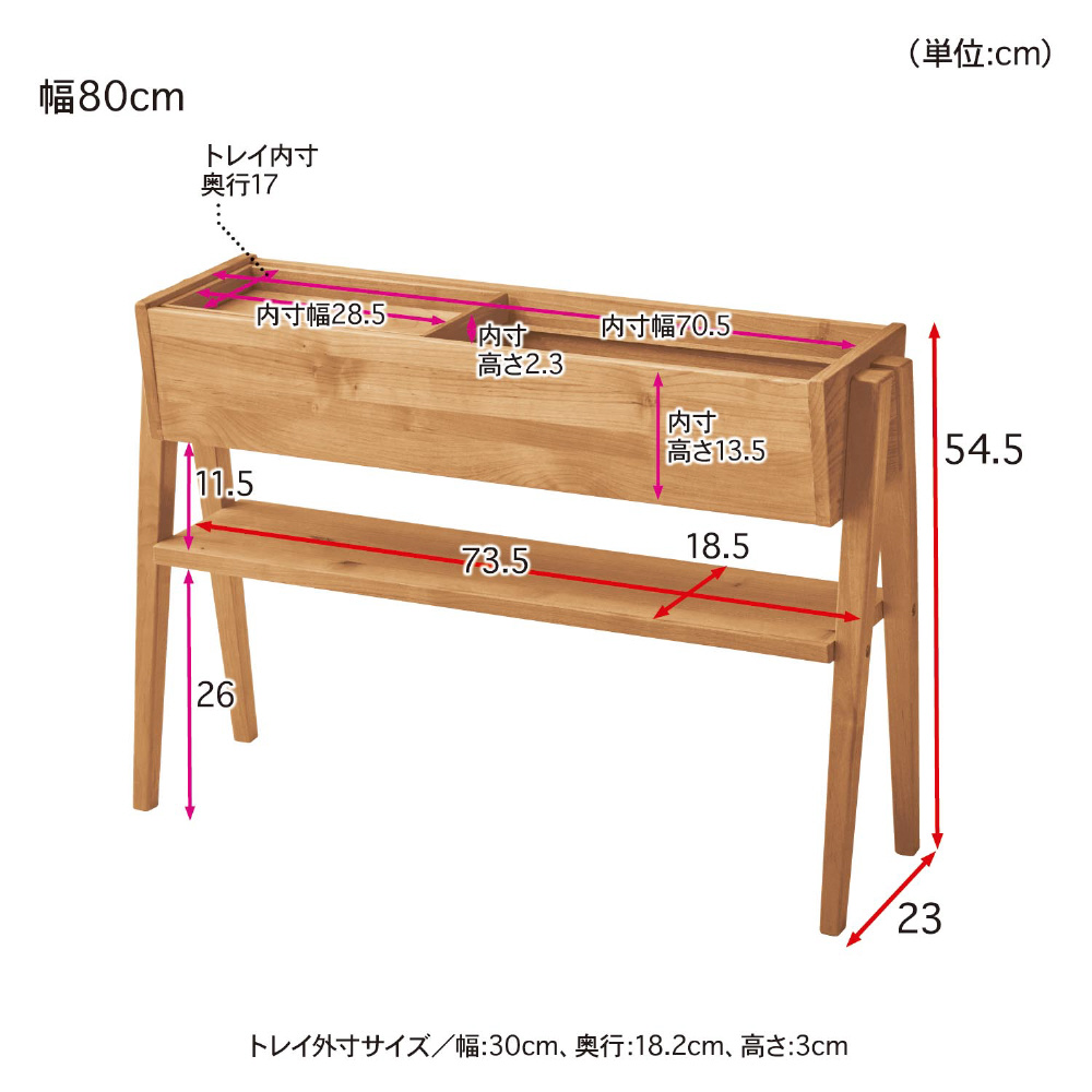 天然木アルダー材を使ったサイドラック 幅80cm