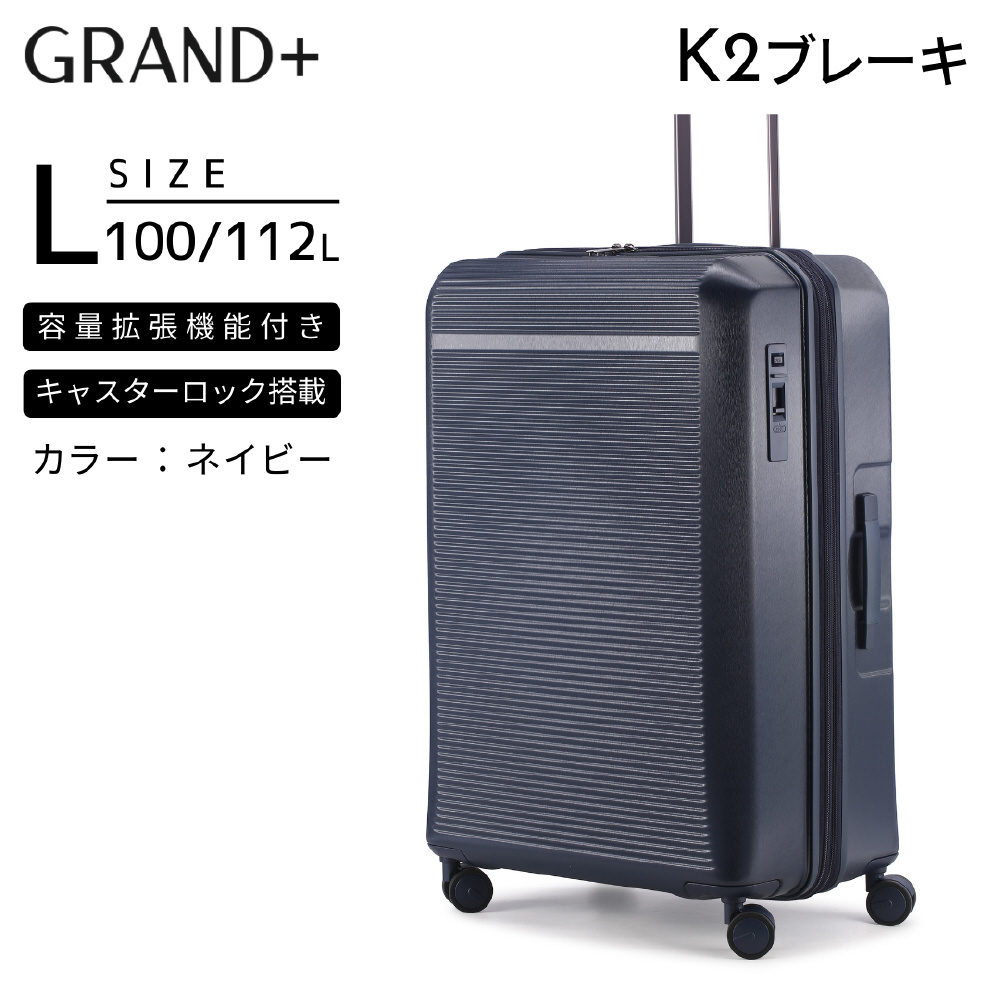 キャスターストッパー機能付 スーツケース Lサイズ K2 ブレーキ ネイビー K2B-L02 [TSAロック搭載]