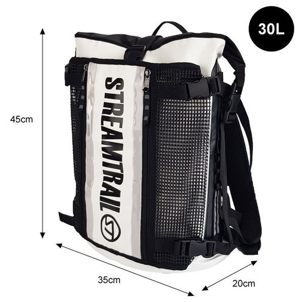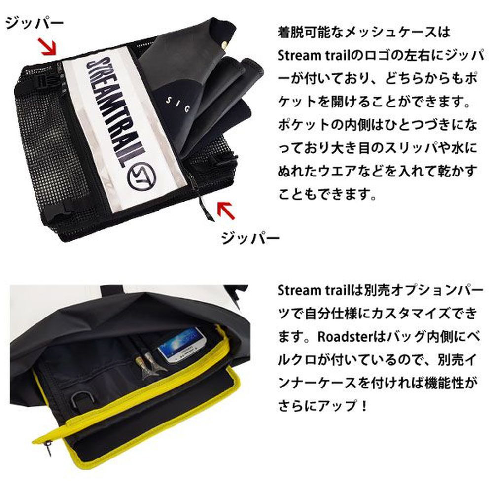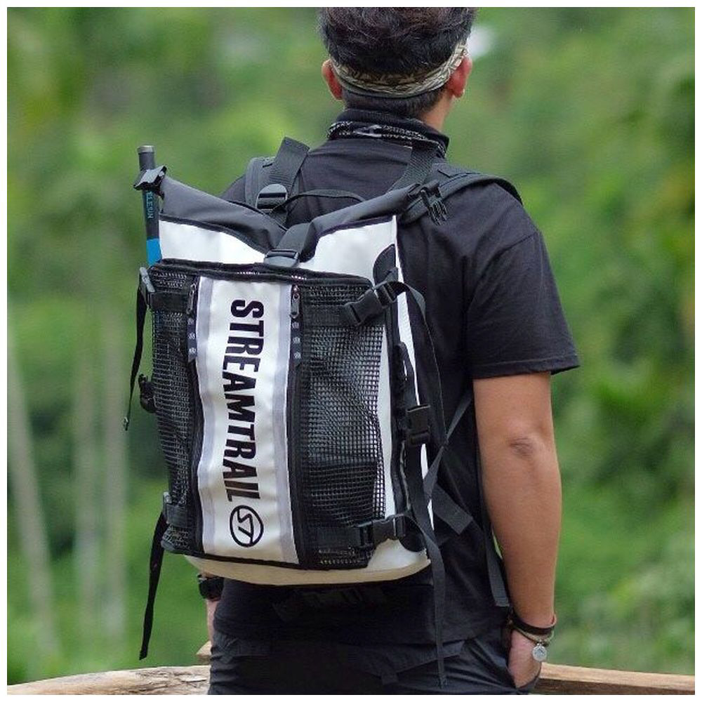取り外しできるメッシュポケットが最大の特徴で、Stream Trailの他バッグと同様、高い防水性を備えています。