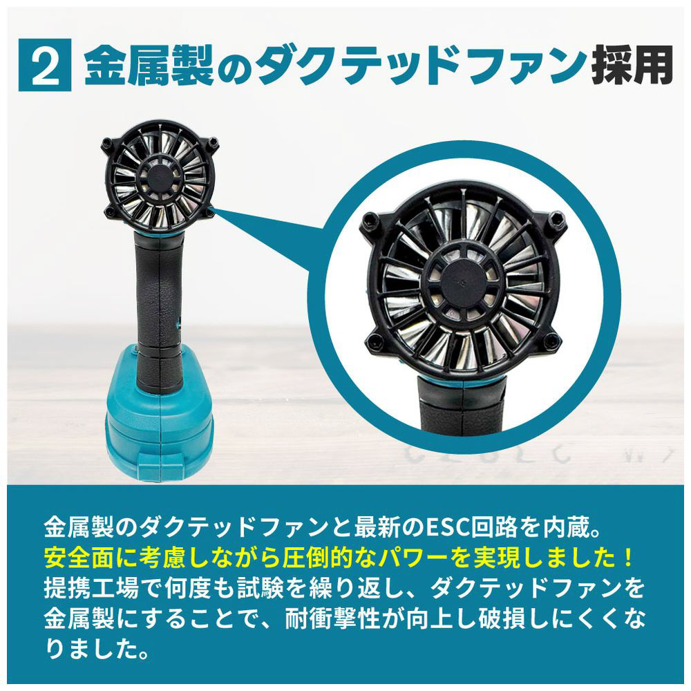 また、金属製のダクテッドファンを採用しているため、安全性に考慮しながら圧倒的なパワーを実現しています。