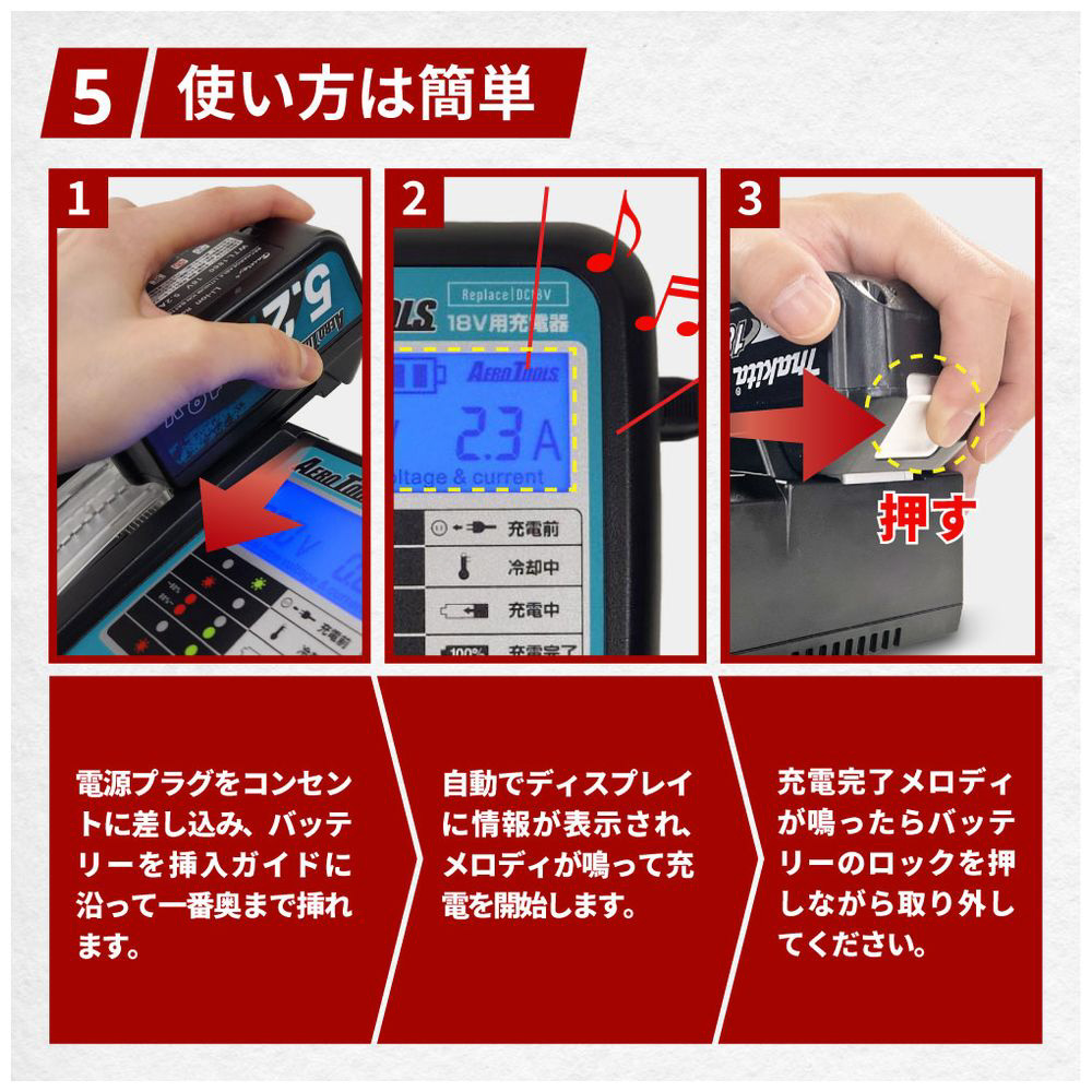 ■充電状況がひと目でわかる液晶ディスプレイ