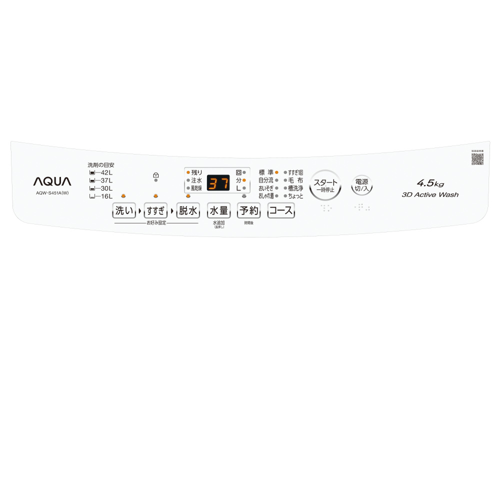 全自動洗濯機4.5Kg AQUA ホワイト AQW-S451A(W) [簡易乾燥(送風機能) /上開き]