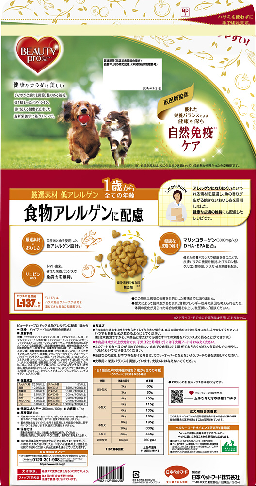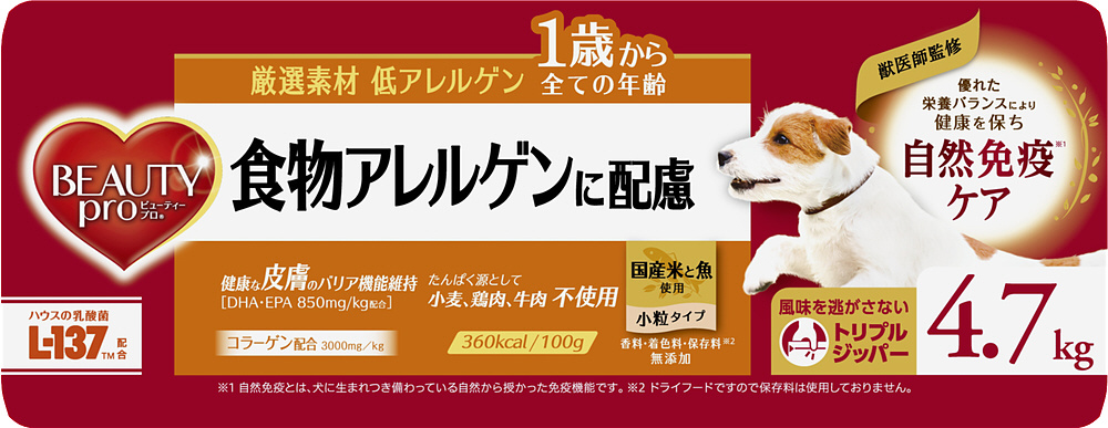 ビューティープロ ドッグ 食物アレルゲンに配慮 1歳から 4.7kg