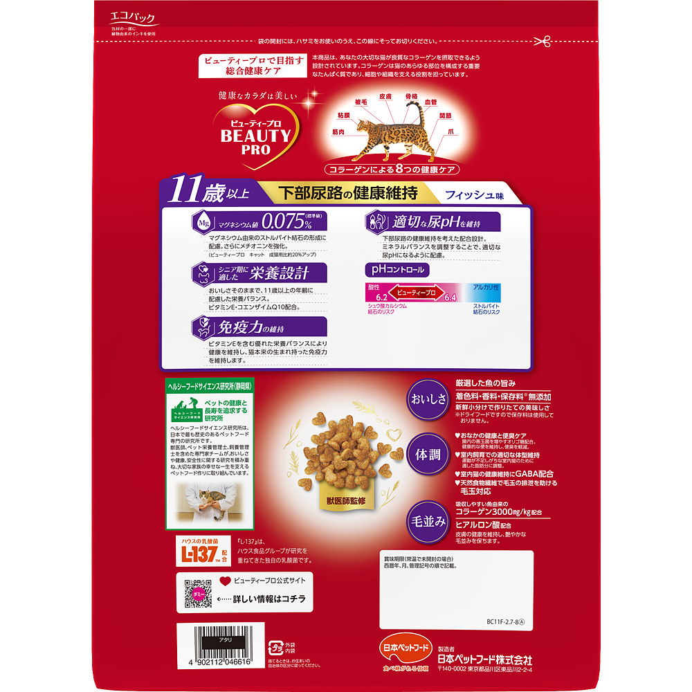 ビューティープロ キャット 下部尿路の健康維持 11歳以上 フィッシュ味 2.7kg(450g×6袋)