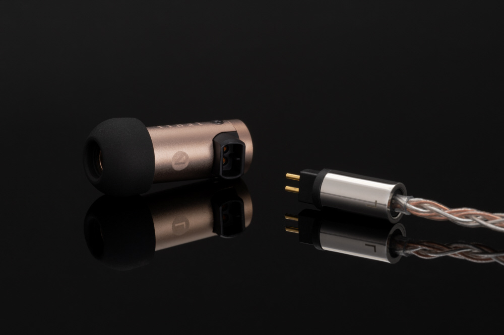 柔らかく取り回しの良い12芯の単結晶銅ケーブルを同梱。 2PINコネクターは高精度な自社開発品で、最も汎用性が高いとされるφ0.78規格を採用しています。