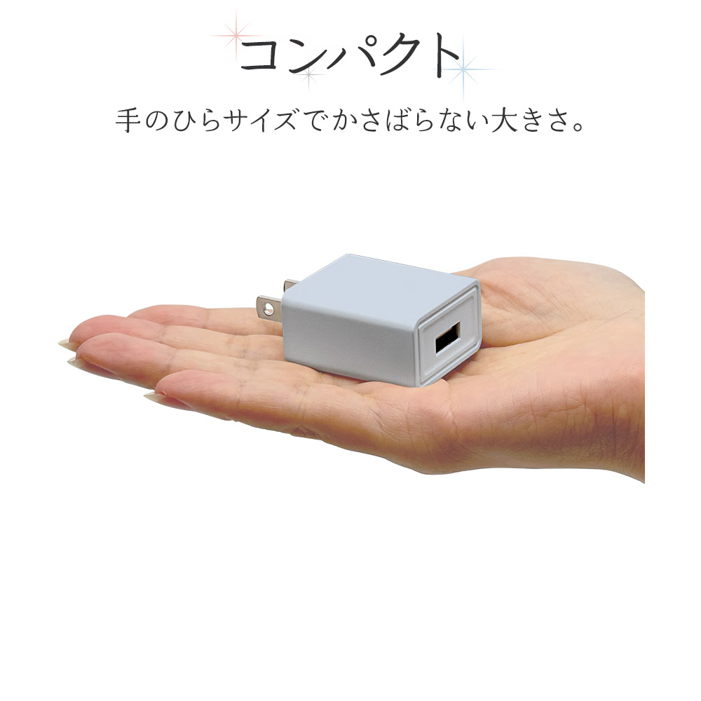 充電器 ACアダプター AC充電器 USBポート タイプA 2アンペア 汎用 コンセント AC USB Type-A typea 2A コンパクト スモーキーブルー 理美容家電 ヘアアイロン シェーバー