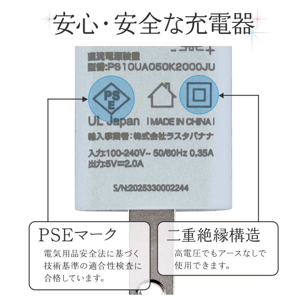 PESマーク:電気用品安全法に基づく技術基準の適合性検査に合格しています。
