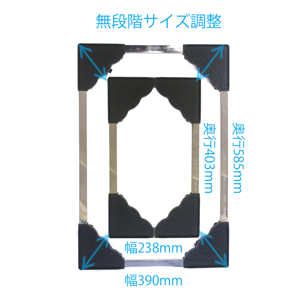最大で幅390mm、奥行き585mmまで広げる事ができます。