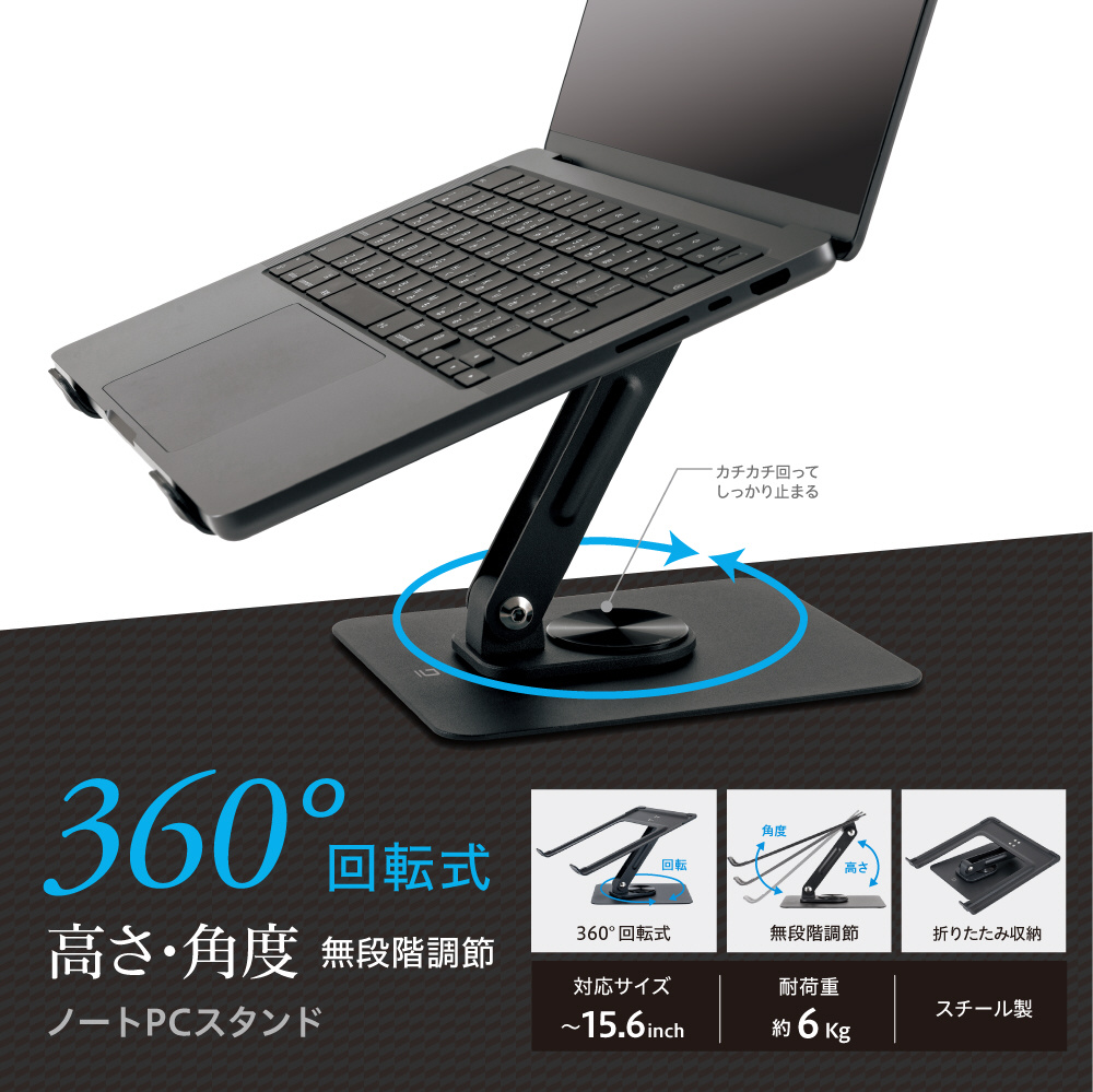 360°回転するノートPCスタンド。