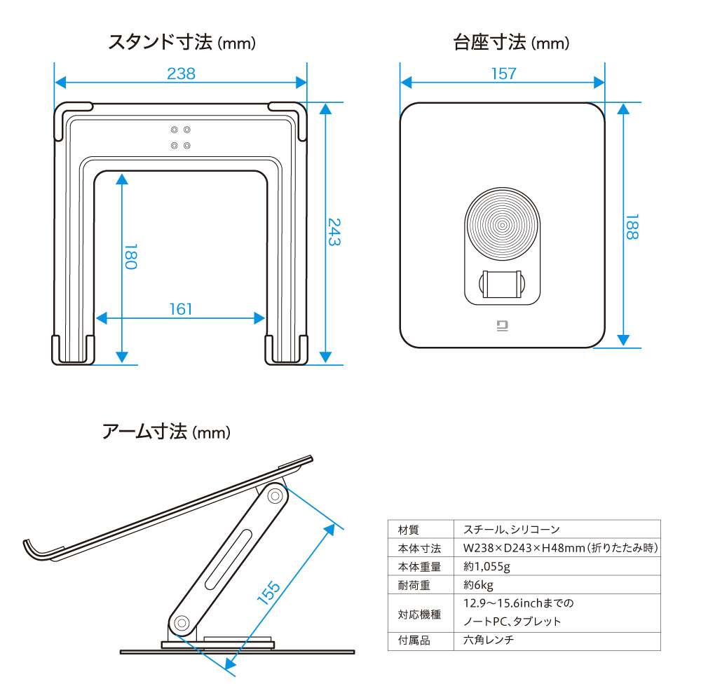 [本体寸法]約W238×D243×H48mm(折りたたみ時)