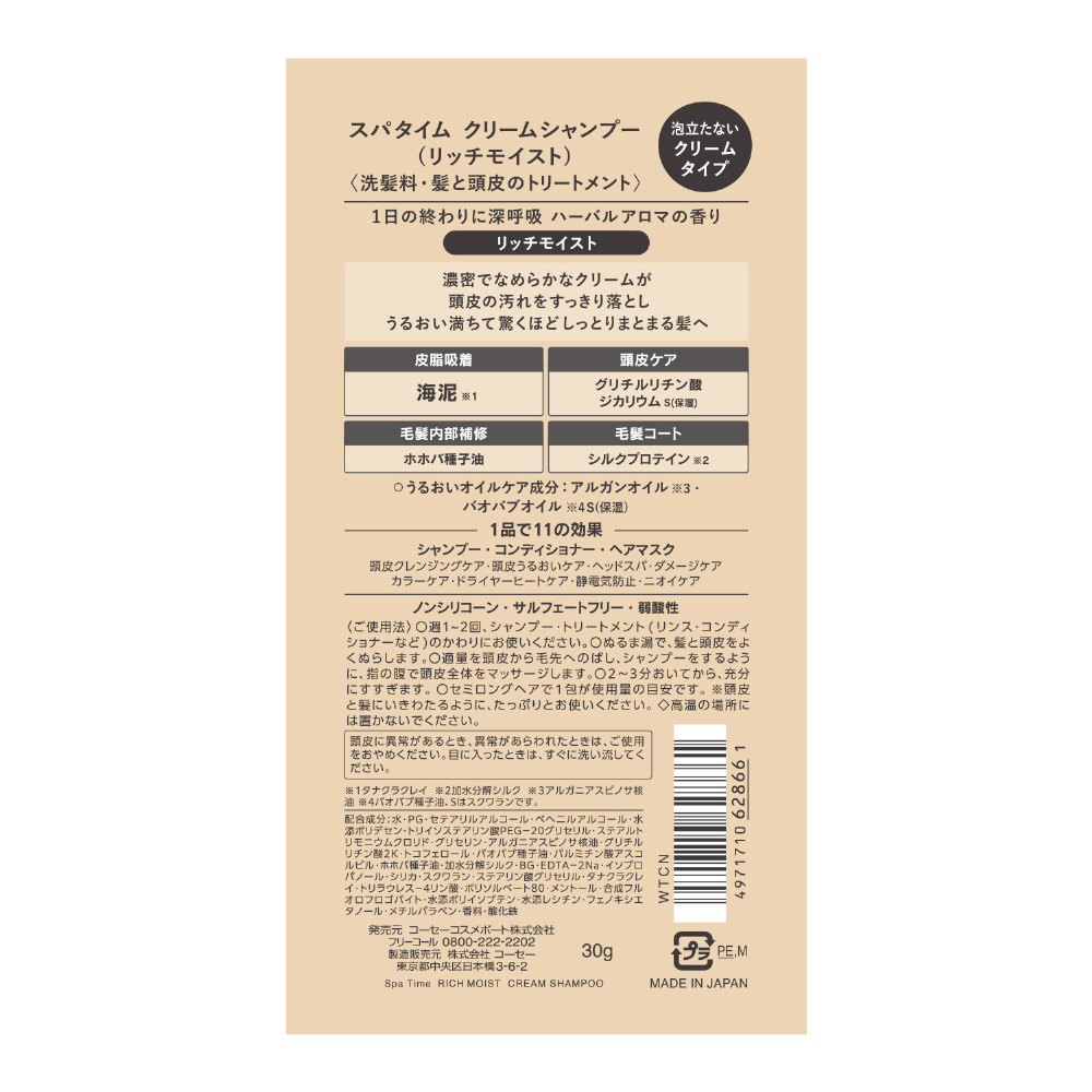 スパタイム クリームシャンプー トライアル (リッチモイスト)