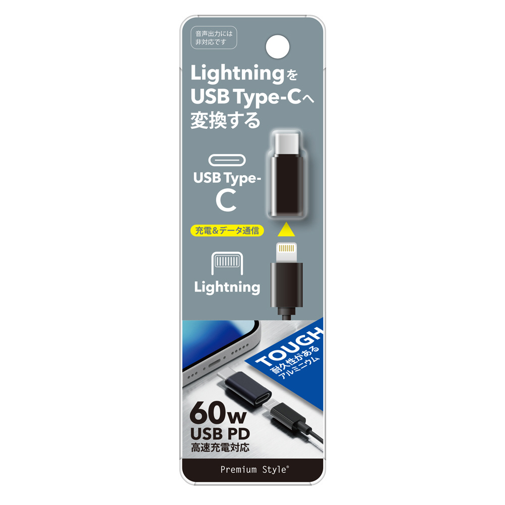 Lightning to USB Type-C 変換アダプタ アルミ Premium Style ブラック PG-LNC03BK