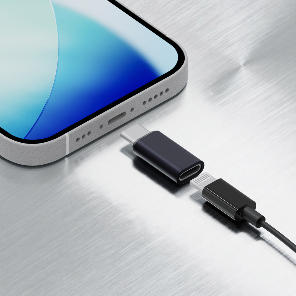 高耐久のアルミ素材を使用したLightningをUSB Typ-Cに変換し、充電・データ通信に対応したアダプタ