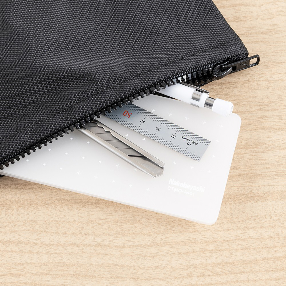 手のひらサイズに折りたたんでペンケースに収納できる!A4サイズまでのカット作業に対応したモバイルカッティングマットです。