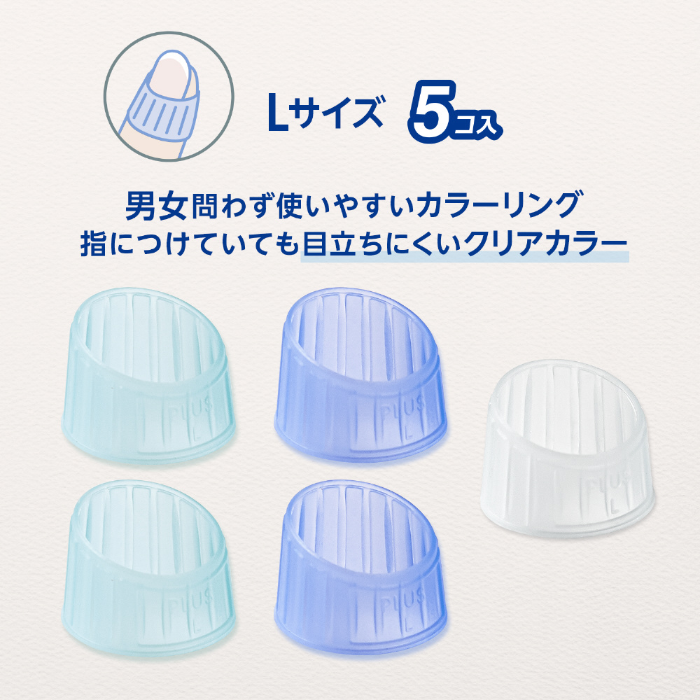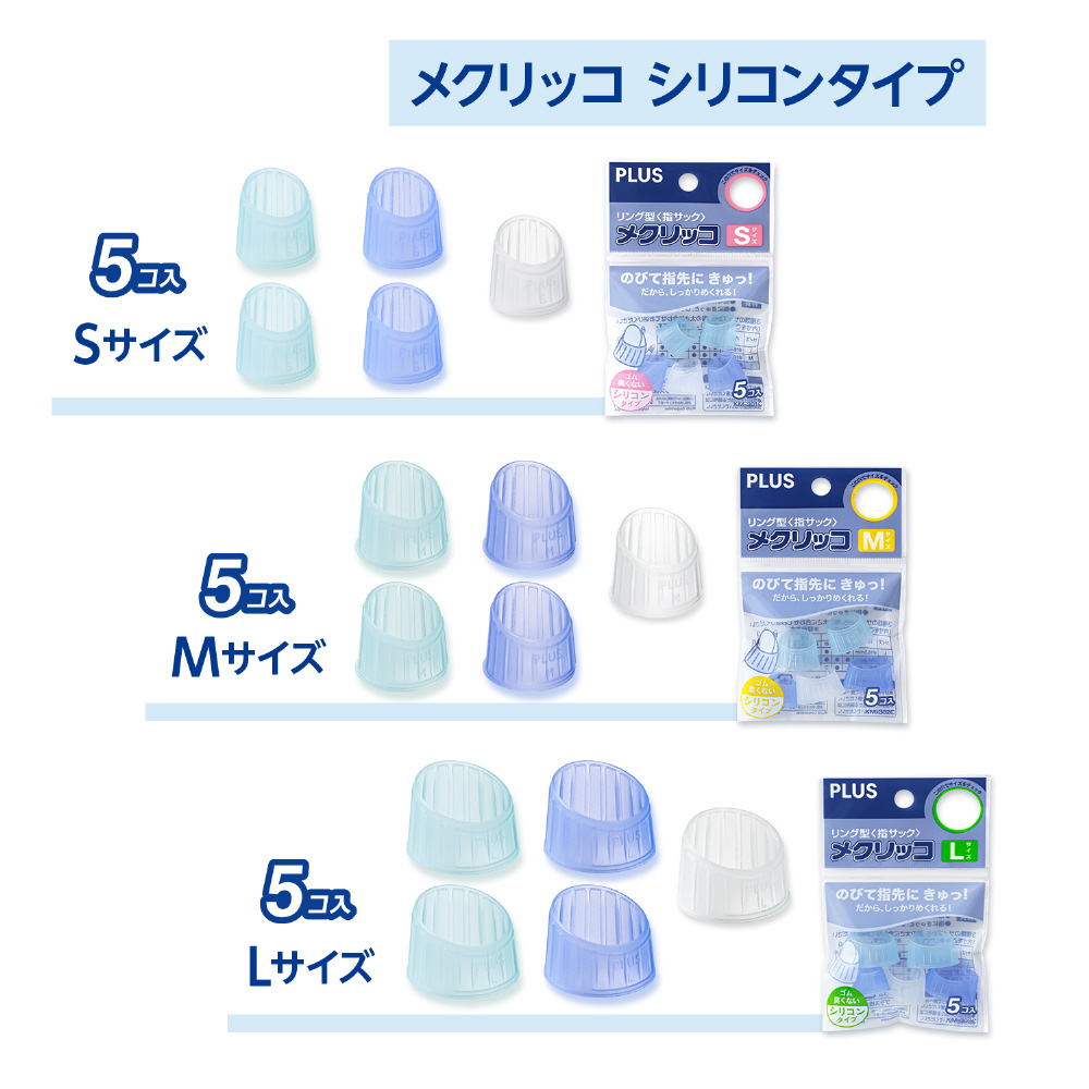 リング型(指サック)メクリッコ シリコンタイプがリニューアルして再登場!どなたでも選びやすいブルー系カラーミックス。やわらかく伸縮性に優れたシリコン素材でしっかりフィットしスムーズに紙がめくれます。リング形状なので長時間付けたままでもムレにくく、ネイルアートをしている爪の長い方でも安心して使用できます。
