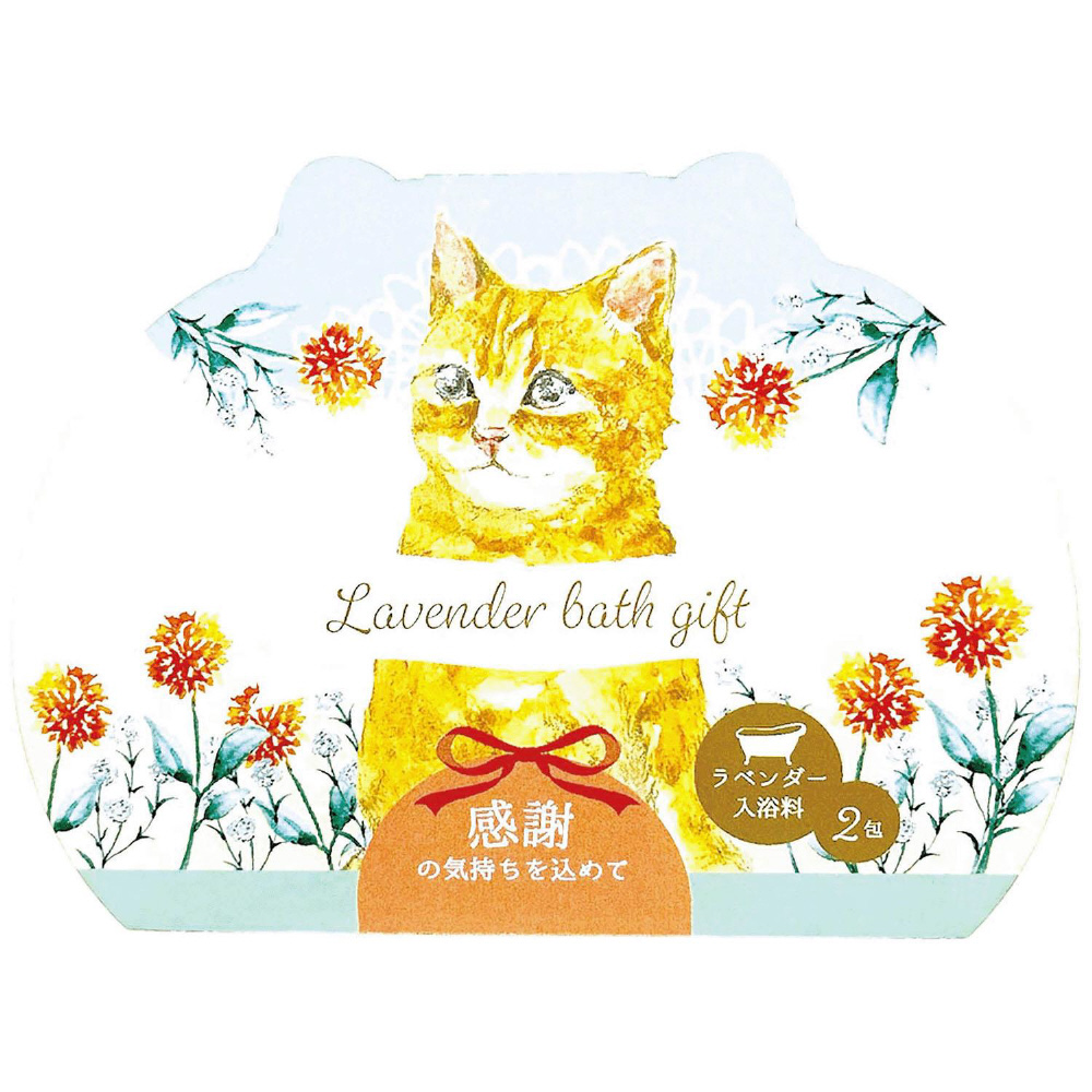 可愛い猫のパッケージとメッセージ入りの入浴料「感謝の気持ちを込めて」