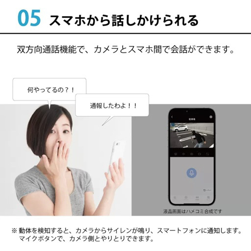 専用モニターがなくてもセキュリティカメラ単体でスマホアプリから利用できます