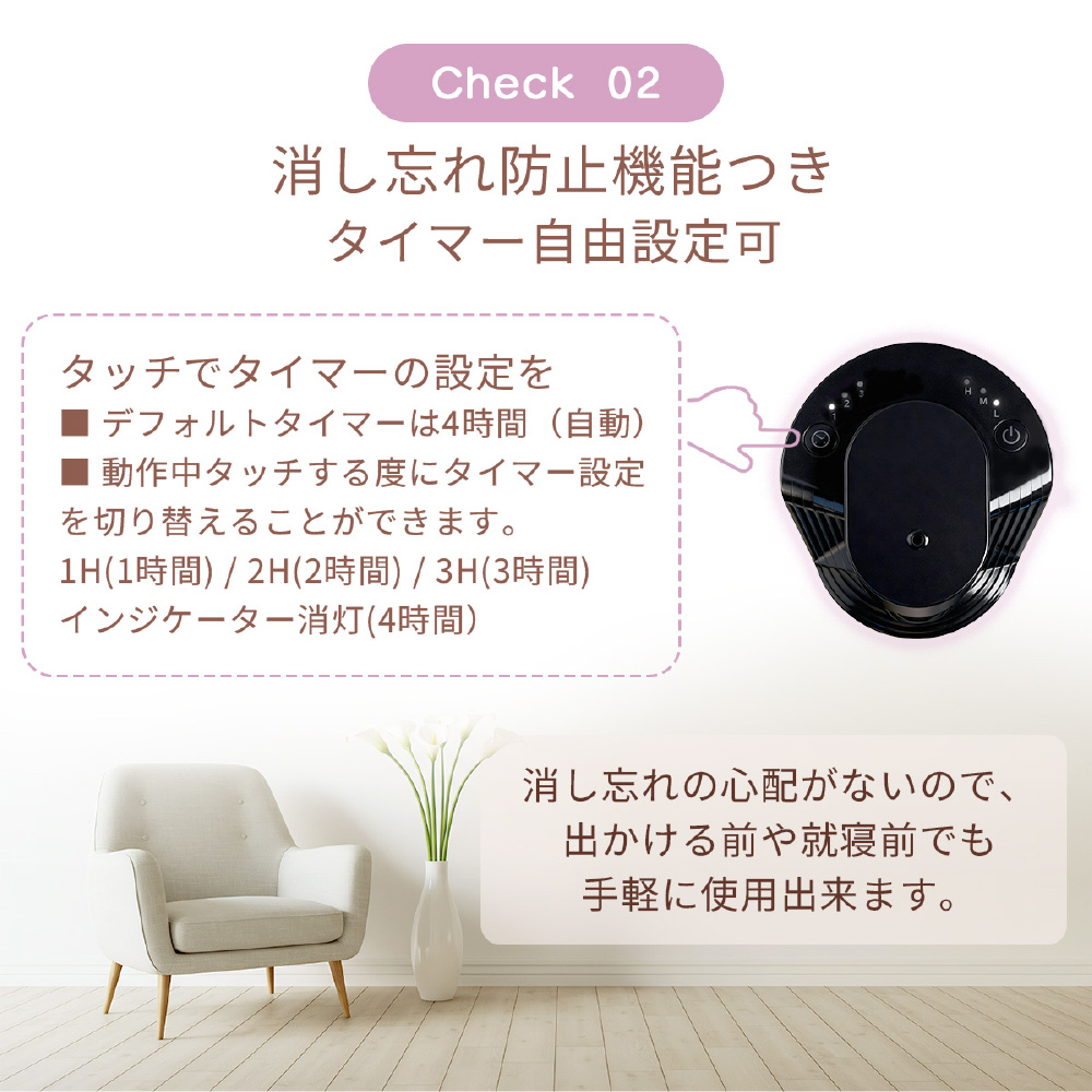 仕様1 ・タイマー選択:1時間/2時間/3時間/4時間
