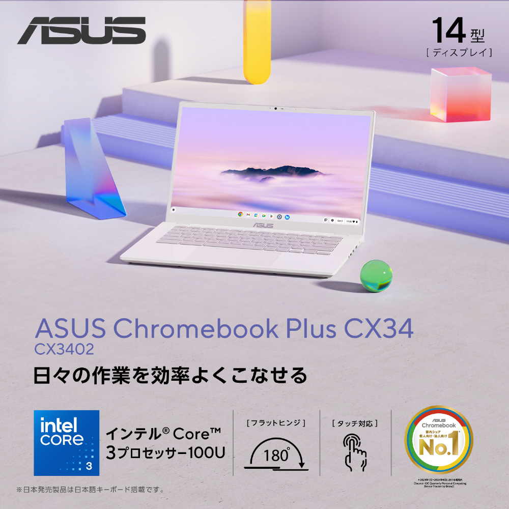 ノートパソコン Chromebook Plus CX34 (CX3402) パールホワイト CX3402CVA-MW1032 [14.0型 /Chrome OS /intel Core 3 /メモリ:8GB /UFS:128GB /無し /日本語版キーボード /2025年12月モデル]