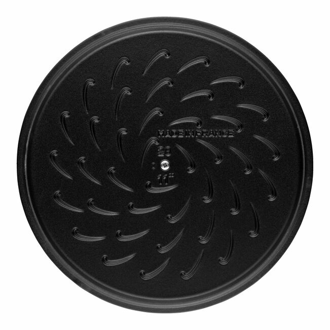 ■黒マットエマイユ加工:内部はストウブ独自のザラザラ加工。細かな凹凸によって表面積が増えるため油なじみがよく、食材の接点が少なくなり焦げ付きにくくなります。