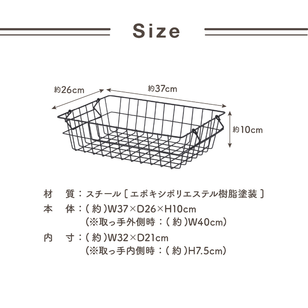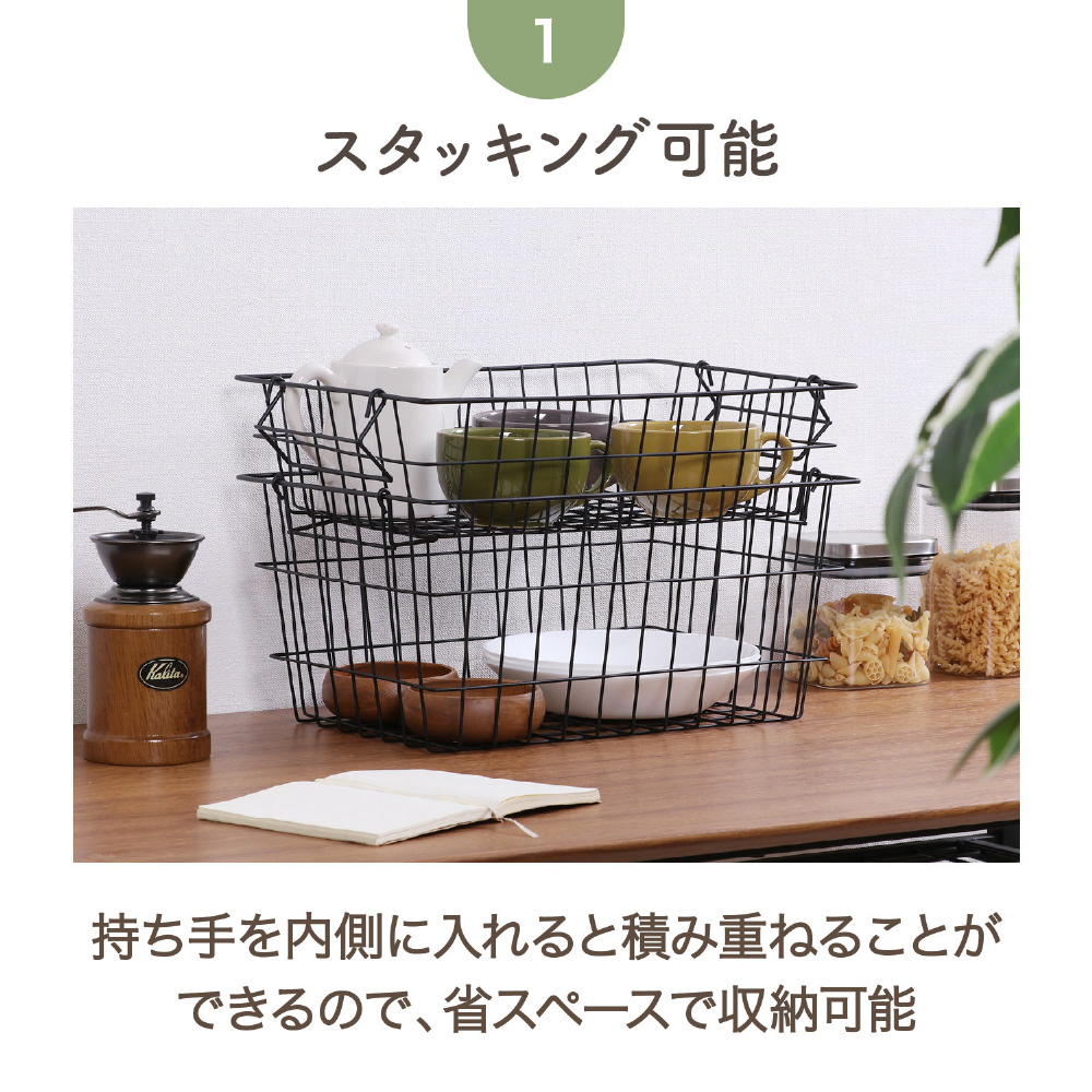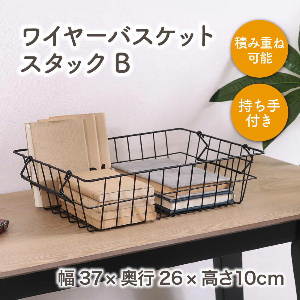 ワイヤーバスケット スタッキング 幅37×奥行27×高さ10cm ブラック 14227