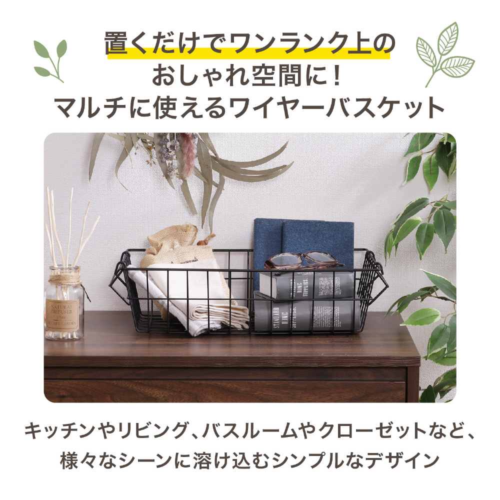 ソファ横に置いて雑誌や小物を入れたり、キッチン小物や食料品の整理に使ったりなど、様々な場所でお使いいただけます。