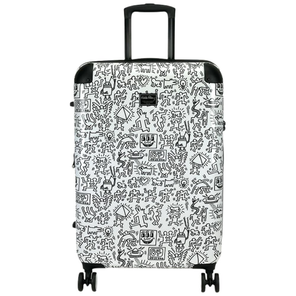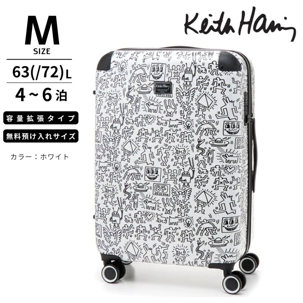 拡張機能付きスーツケース 無料預け入れ Mサイズ キースへリング ホワイト 15901 [TSAロック搭載]