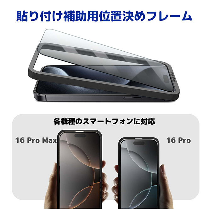 貼り付け補助用の位置決めフレームと付属キットで、誰でも簡単にズレなく貼り付け可能。気泡が入りにくく、美しい仕上がりをサポート。
