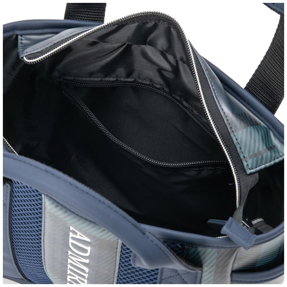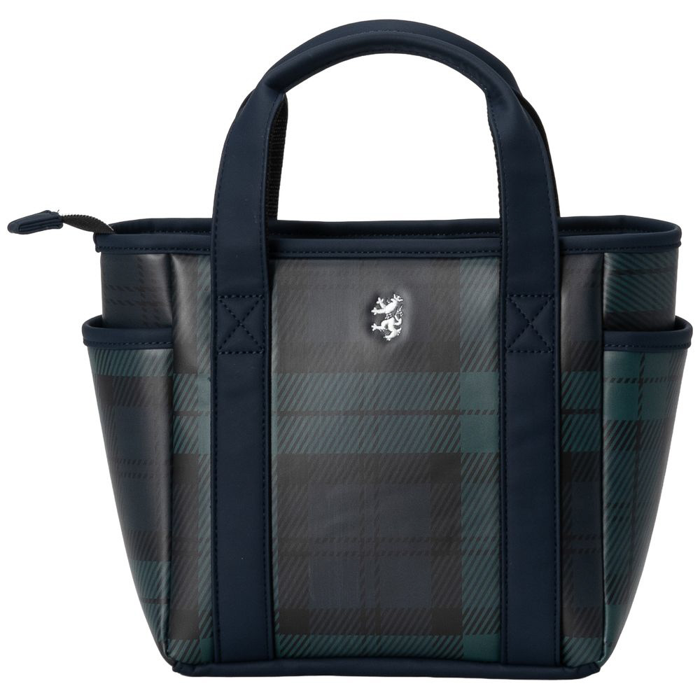 ロゴは刺繍で高級感を演出。サイドポケット2個と内装にファスナーポケットを装備し、収納力に優れる構造。