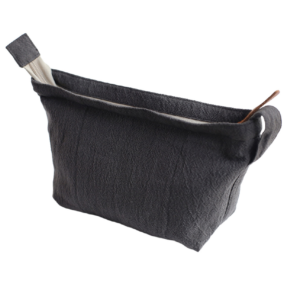 ポーチ ウォッシュドコットン Lサイズ 綿 100% 小物入れ 化粧ポーチ ブラック