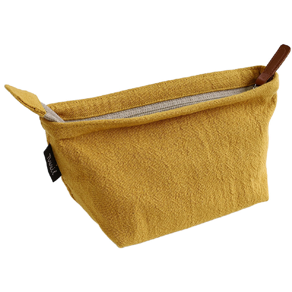 ポーチ ウォッシュドコットン Mサイズ 綿 100% 小物入れ 化粧ポーチ マスタード