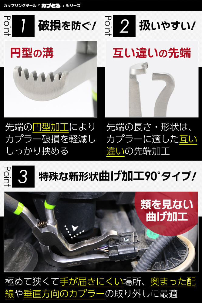 ・横から差し込む特殊モデル ・中級〜上級DIYユーザー、整備士 ・エンジンルームの横向きカプラー ・難所対応用として2本目に