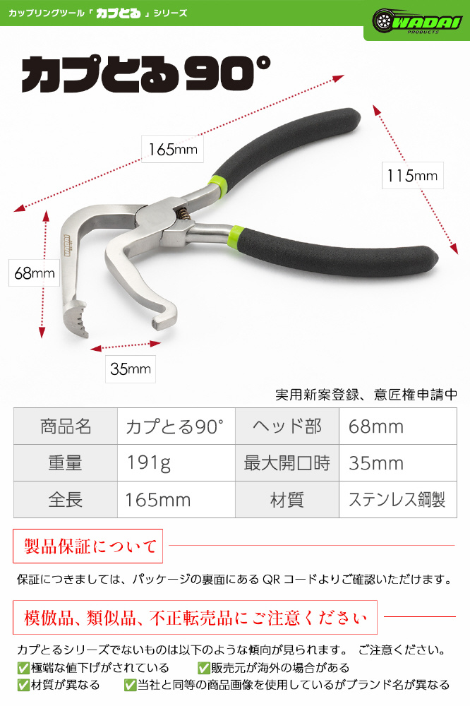 ●重量:191g ●全長:165mm ●ヘッド部:68mm ●最大開口時:35mm