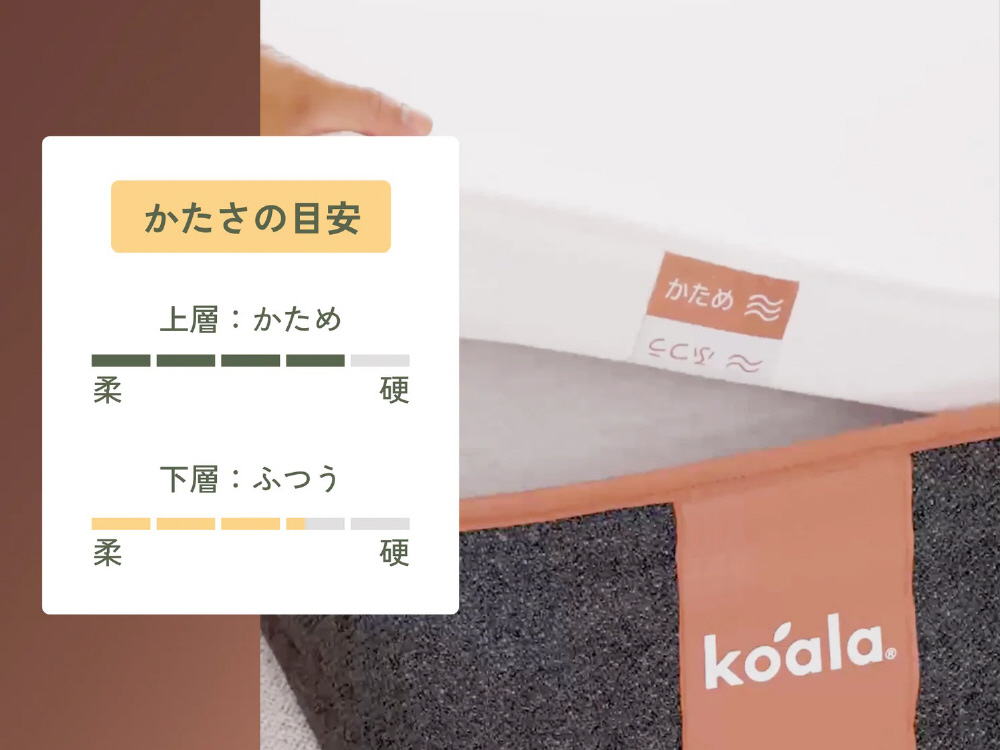 コアラのコンフォートレイヤーは、独自のリバーシブル仕様。その時々に最適なかたさに調整できます。