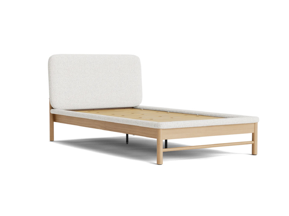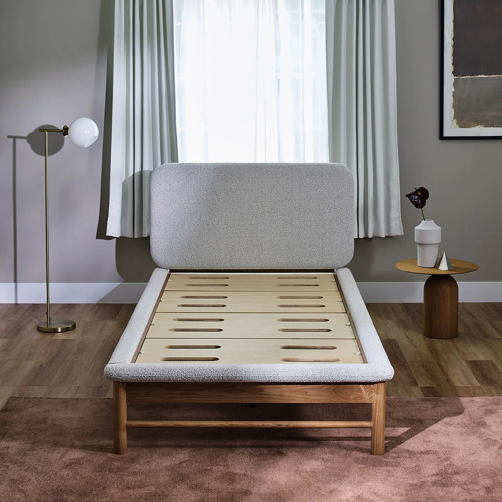 寝室をプレミアムな空間に彩る上質なブークレ生地のフレームが、あなたのリラックスタイムをより快適に。