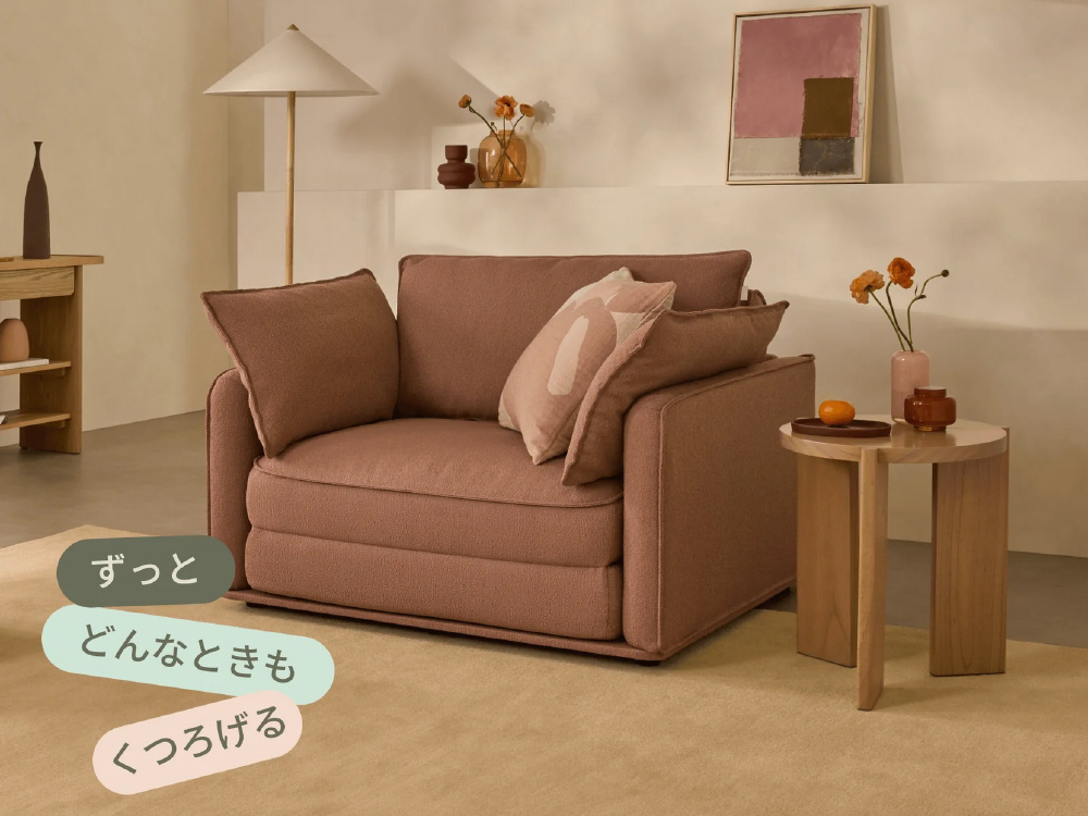 ひとりでも、ふたりでも心地いいCUSHYは、寝転んでも座っても、1日中快適。トッパーにはクラウドセル(R)を採用し、マットレスのような寝心地を実現しました。