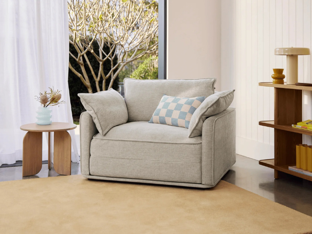 ひとりでも、ふたりでも心地いいCUSHYは、寝転んでも座っても、1日中快適。トッパーにはクラウドセル(R)を採用し、マットレスのような寝心地を実現しました。