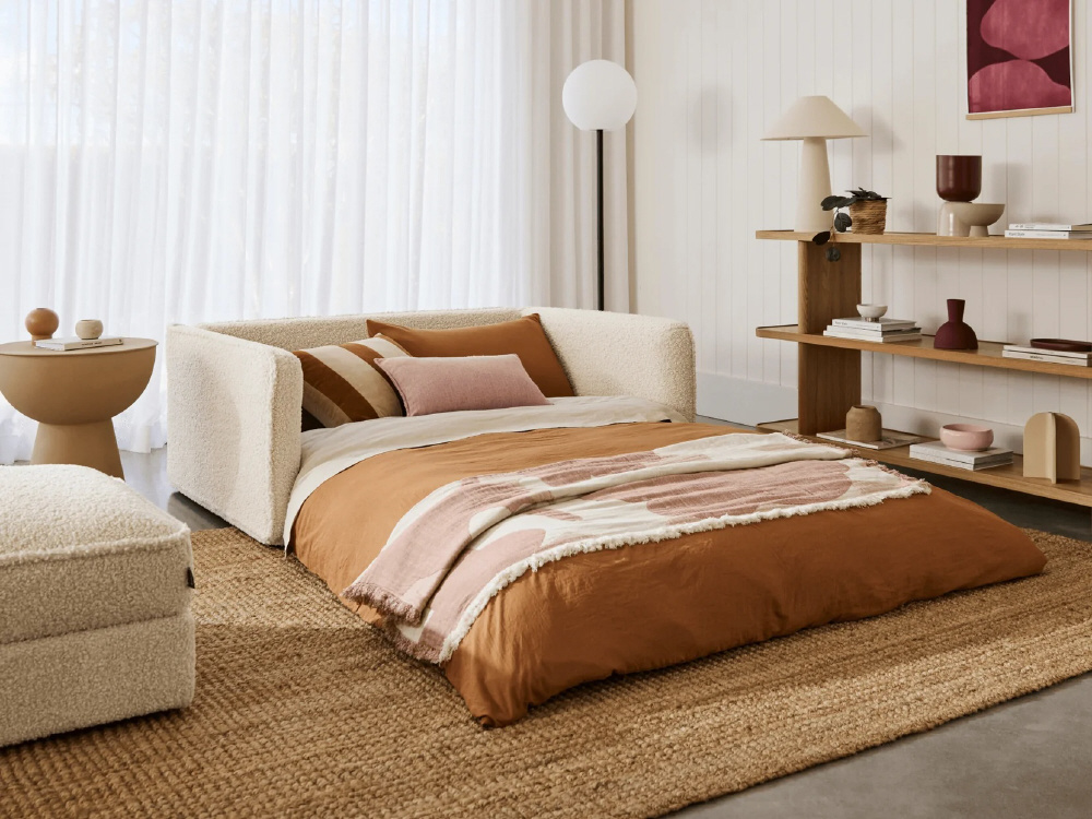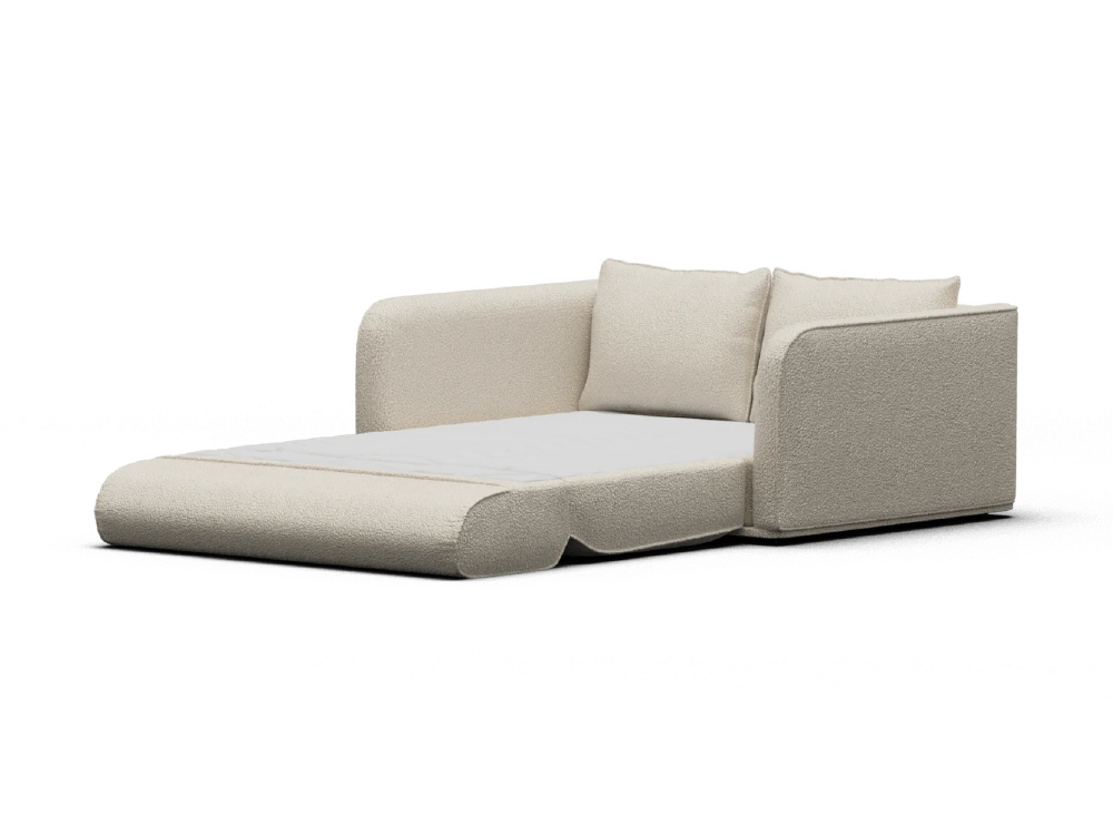 進化したCUSHYは、背もたれと座面を倒せば5秒でフルサイズのベッドに切り替え可能。