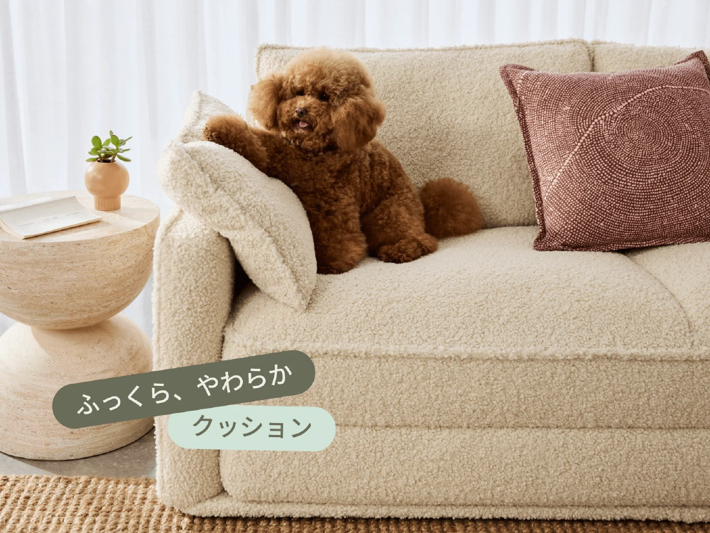 ひとりでも、ふたりでも心地いいCUSHYは、寝転んでも座っても、1日中快適。トッパーにはクラウドセル(R)を採用し、マットレスのような寝心地を実現しました。