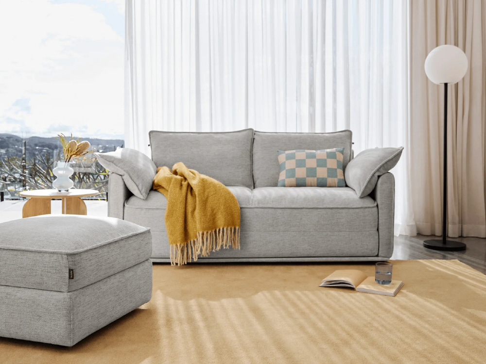 ひとりでも、ふたりでも心地いいCUSHYは、寝転んでも座っても、1日中快適。トッパーにはクラウドセル(R)を採用し、マットレスのような寝心地を実現しました。