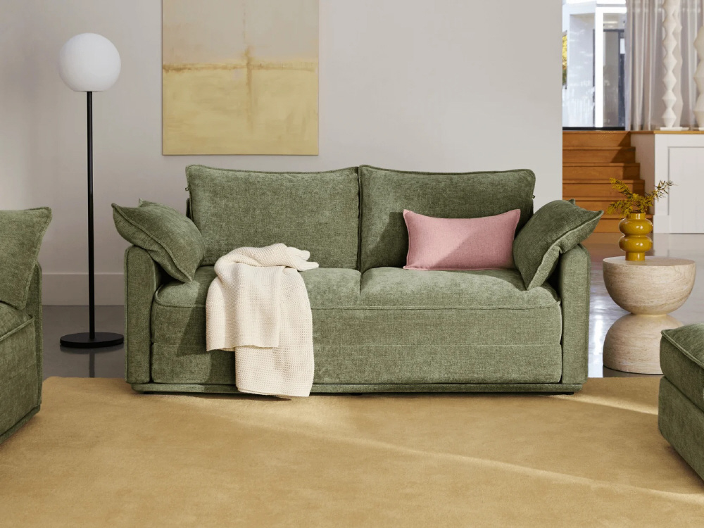 ひとりでも、ふたりでも心地いいCUSHYは、寝転んでも座っても、1日中快適。トッパーにはクラウドセル(R)を採用し、マットレスのような寝心地を実現しました。