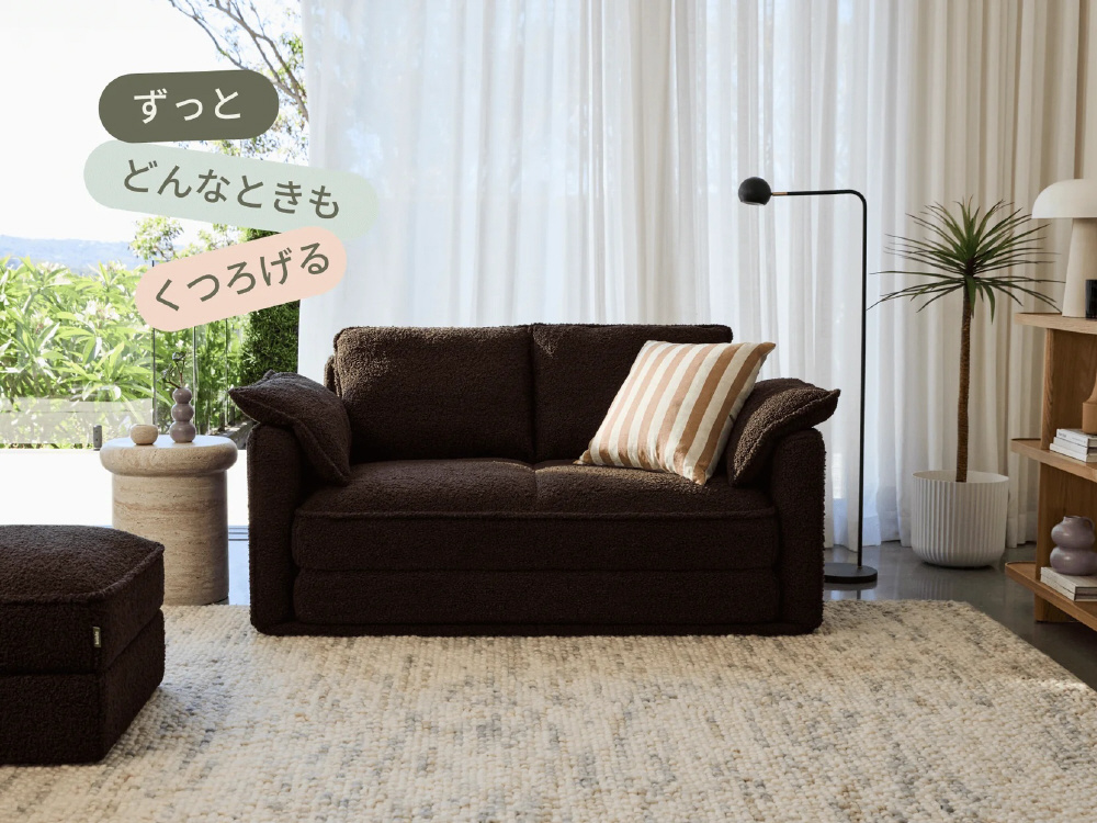 ひとりでも、ふたりでも心地いいCUSHYは、寝転んでも座っても、1日中快適。トッパーにはクラウドセル(R)を採用し、マットレスのような寝心地を実現しました。