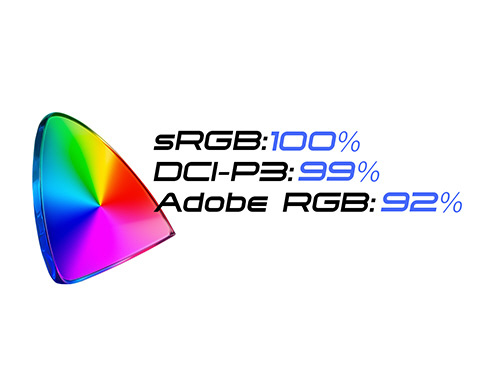 ■あらゆる角度から見ても色やコントラストの変化がおきにくいIPSパネルを搭載し、広視野角上下左右178°を実現します。最大輝度300cd/m2の液晶パネルは、sRGB:100%(DCI-P3:99%、Adobe RGB:92%)の広色域に対応し、写真や動画編集などの作業にも最適です。