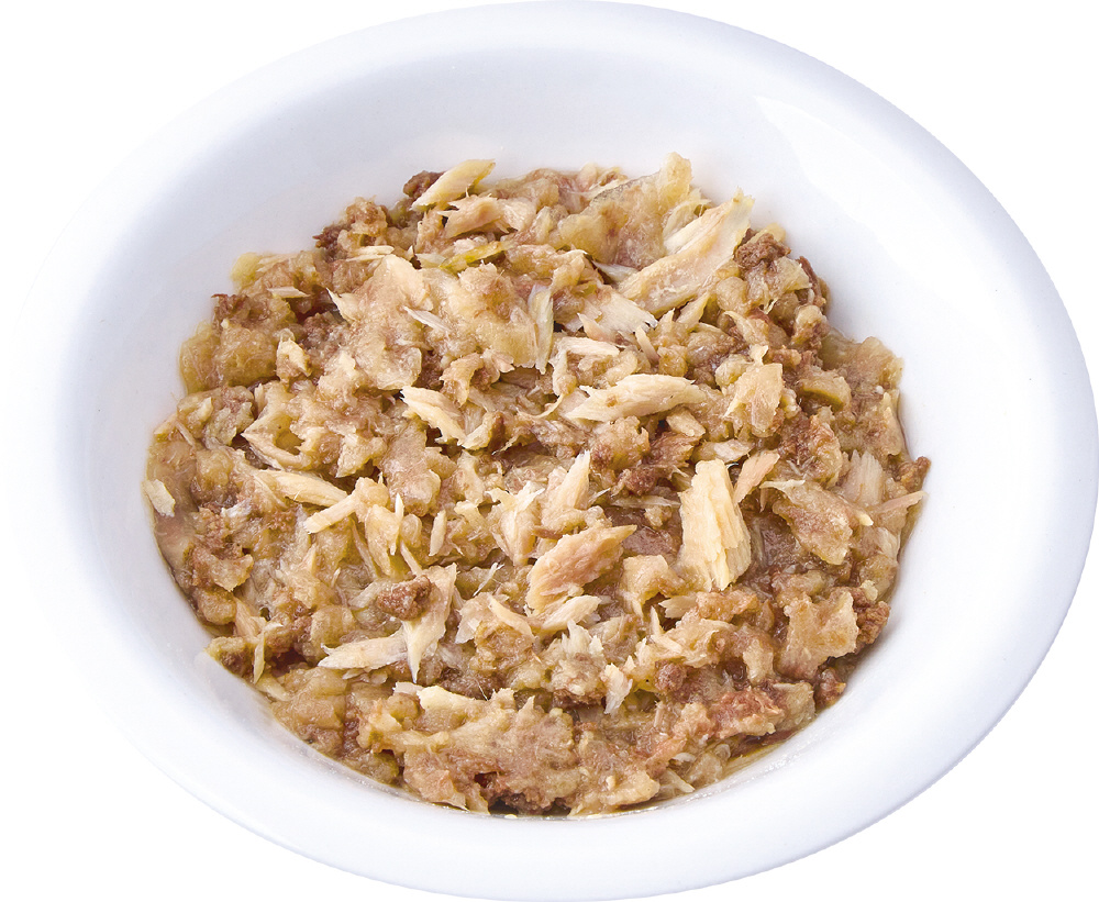 お魚のほぐし身を贅沢に使用。旨みぎゅぎゅっとあふれるおいしさ■詳細説明・お魚のほぐし身を贅沢に使用したウェットフードです。・温めると一層美味しくなります。・グレインフリー穀物不使用。・着色料・調味料不使用。・まとめ買いに適した4袋入。■原材料かつお、まぐろ、増粘安定剤(カラギーナン)■保証成分たん白質11.0%以上、脂質0.1%以上、粗繊維1.0%以下、灰分2.5%以下、水分85.0%以下■エネルギー65kcal/100g■賞味期限730日