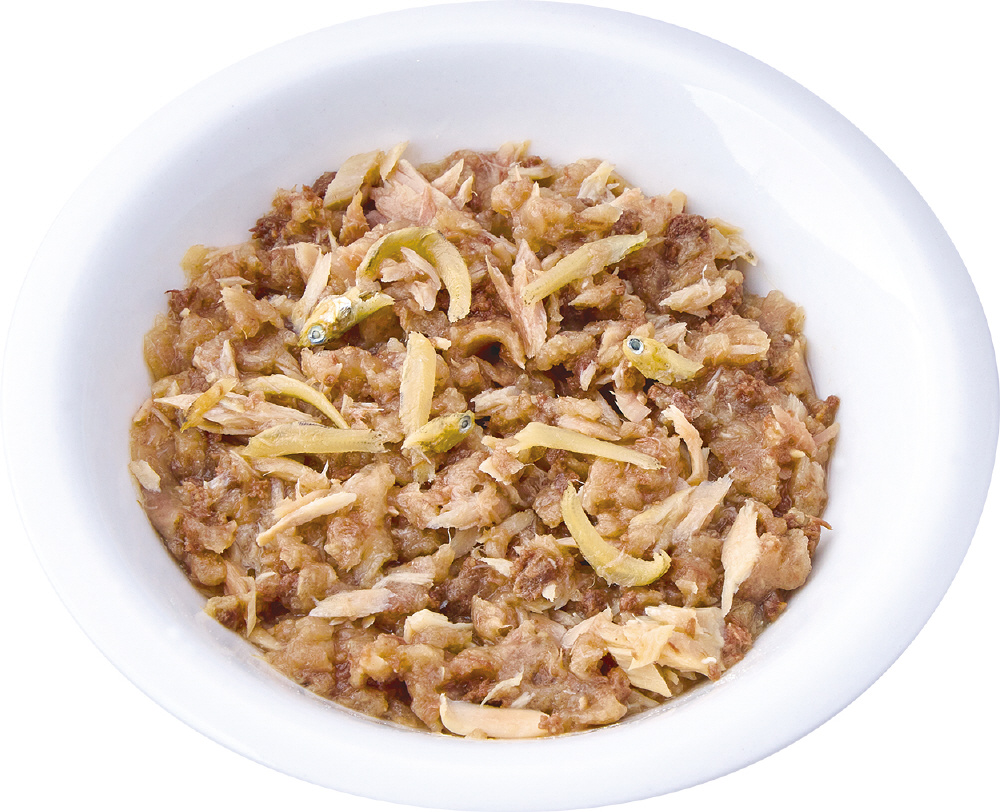 お魚のほぐし身を贅沢に使用。旨みぎゅぎゅっとあふれるおいしさ■詳細説明・お魚のほぐし身を贅沢に使用したウェットフードです。しらす入り。・温めると一層美味しくなります。・グレインフリー穀物不使用。・着色料・調味料不使用。・まとめ買いに適した4袋入。■原材料かつお、まぐろ、しらす、増粘安定剤(カラギーナン)■保証成分たん白質11.0%以上、脂質0.1%以上、粗繊維1.0%以下、灰分2.5%以下、水分85.0%以下■エネルギー65kcal/100g■賞味期限730日