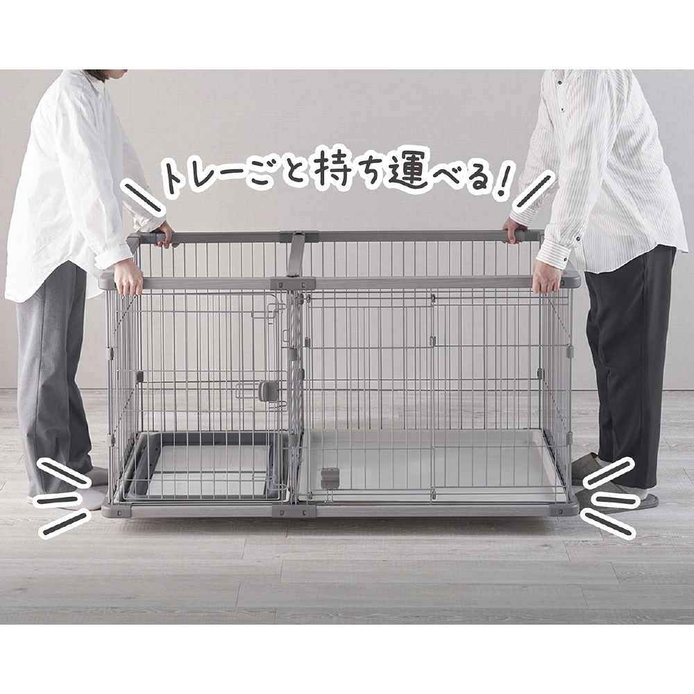 トイレと住居スペースを区切れるから、トイレの場所を覚えやすい!住居側は横スライドドアで開閉がスムーズ。トイレ側はドアが大きく開き、ワンちゃんの出入りやシーツ交換もラクラク!