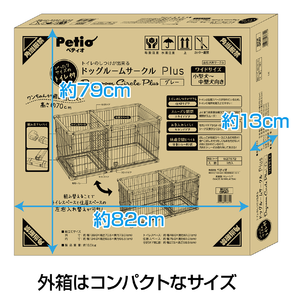 犬用 トイレのしつけが出来る ドッグルームサークルPlus グレー ワイド